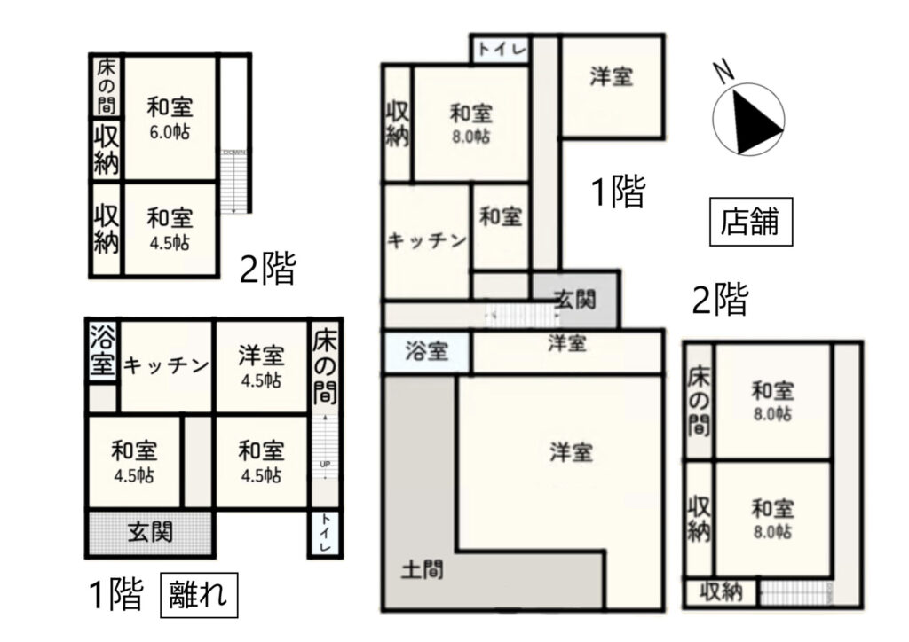 〇離れの床面積は85.38㎡、敷地面積は128.09㎡